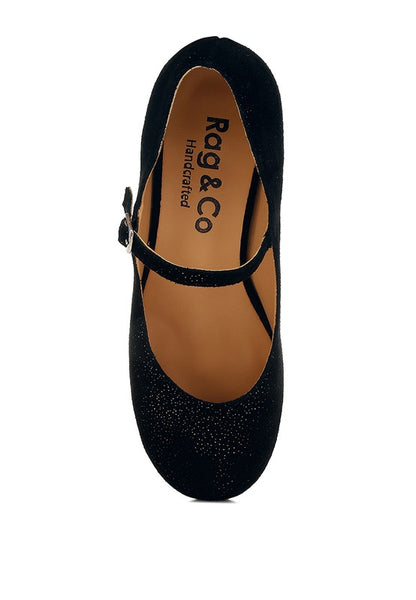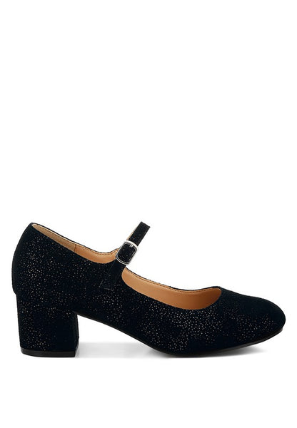 The Mary Janes are a notch up on the timeless silhouette with a touch of shimmer on the suede exterior. The shimmer exudes a beautiful shine on the footwear which gives a sublime and chic visual experience of the Mary Jane sandals. Pair them with your favorite dress for an elegant ensemble.