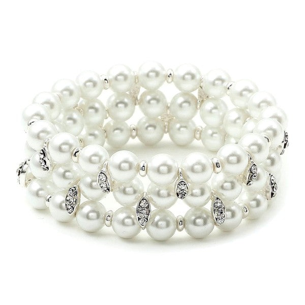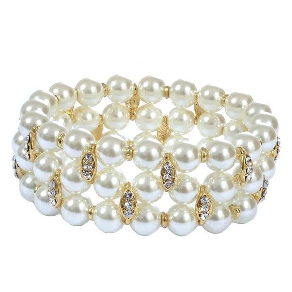 - This bracelet is composed of 3-rows of 8mm white Pearls.