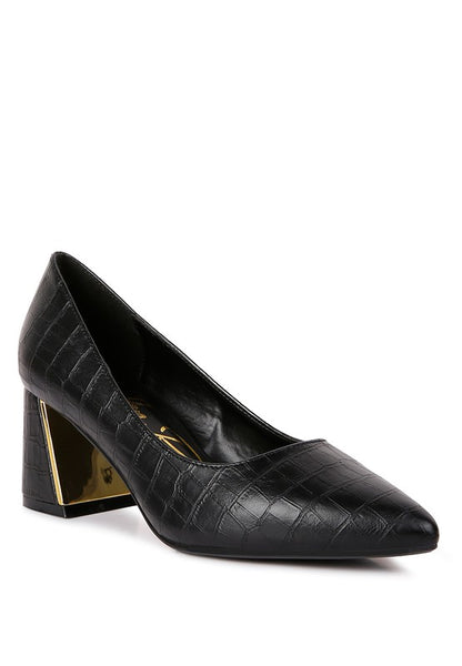 A classic style of pumps and some elevation with the metallic heel detail makes these pump shoes a must-have indeed! The beautiful croc texture makes them look stylish while the soft padded insoles offer comfort to feet. The pumps are perfect as shoes for work and plat and would make great transition shoes as part of your shoedrobe!