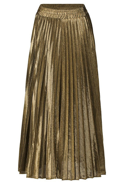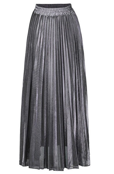 Metallic Pleated Maxi Skirt
