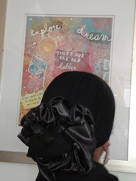 A Lovely Soft Shimmery Black Color. Very Fluffy To Add Volume To Headpieces, Tams, or Head Wraps. Beautiful Hair Accessory to Add Flare and Style To Your Garments. Comes With A Card With The Above Quote.