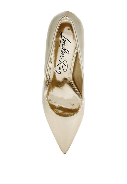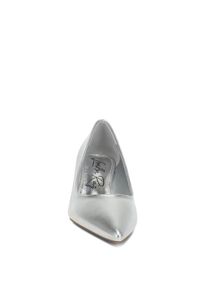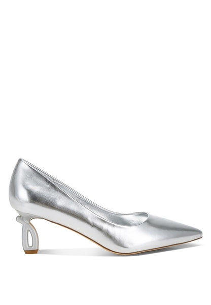 Say hello to your new go-to pumps! Crafted from sheeny metallic faux leather, these pointy-toed beauties feature exquisite fantasy heels. Endlessly versatile, these pumps, infused with plush cushion insoles are perfect for dressing up or down, whether you're enjoying a weekend outing or attending a special party.