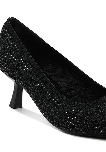 Meet the exquisite rhinestone-embellished pumps, bound to create a sizzling impression. Dip your feet into luxury, as these pumps come with plush cushion insoles and adorable 2.5-inch kitten heels to make you stand out at any formal event or party you grace!